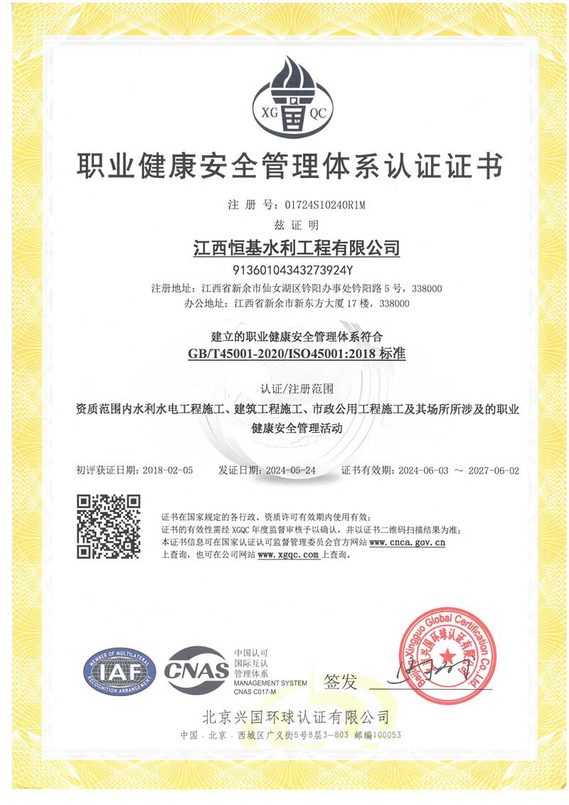 职业健康管理体系证书